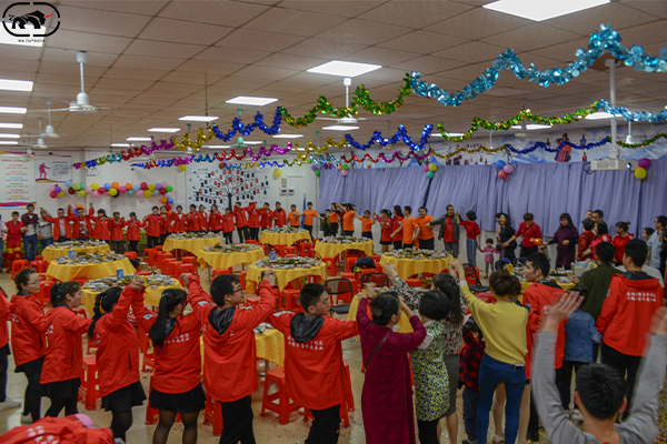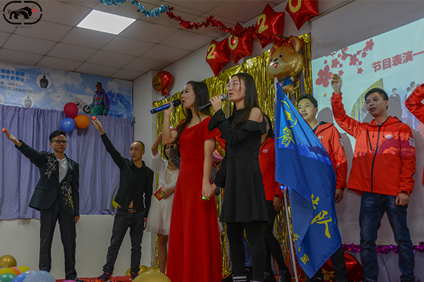 下午五點半過后,大家都陸陸續(xù)續(xù)來到現(xiàn)場,六點正是開始,奪人注目的主持人真是氣質有嘉、精神氣爽,一句:萬馬奔騰辭舊歲,三陽開泰送春來引出年會的氣息;踏著新年的腳步,讓我們相聚在這美好的時刻,在這激動人心的時刻,2020年睿牛制衣聯(lián)歡晚會正式開始了,今年剛好是祖國70周歲,我們的祖國在中國共產黨的領導下日益富強,更加輝煌,在座的各位一起回顧光輝的歷程,難忘的歲月,合唱《歌唱祖國》;