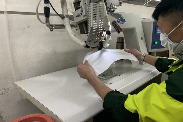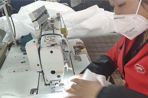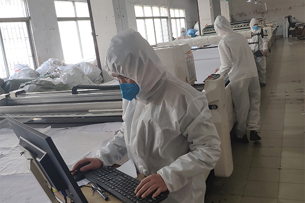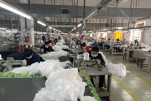 做好上面的防護準備工作,員工(身體狀況良好的)也可以放心的來到工廠上班了,現(xiàn)在思諾華制衣的員工也已經(jīng)陸陸續(xù)續(xù)的來到工廠,全力開展生產(chǎn)防護服,抗擊疫情,隔離病毒但不隔離愛,請觀看以下思諾華制衣工廠實拍生產(chǎn)民用防護服的圖片(員工均佩戴口罩、身體狀況均良好):