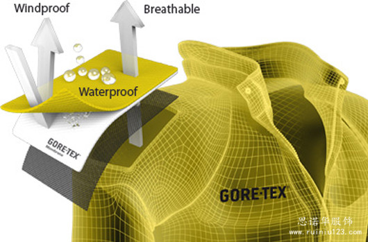 防水薄膜以GORE-TEX?的ePFTE(聚四氟乙烯)薄膜最為著名,其它品牌多采用PU涂層,功能有強有弱,體驗也各不相同。沖鋒衣采用了GORE-TEX?的面料。目前市面上主流的衡量標準是通過測試面料可以承受多少毫米水柱(mmH2O,或mm)的壓強,一般沖鋒衣至少可以達到3000mm,而在極限環(huán)境下的沖鋒衣和專業(yè)滑雪服可以達到20000mm以上。在沖鋒衣制作中專業(yè)沖鋒衣廠家思諾華制衣也都會根據客人的指數(shù)要求進行防水面料的訂購。