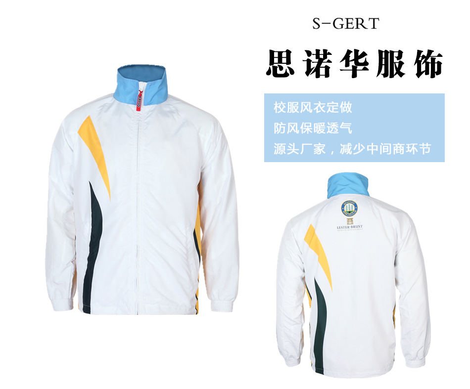 • 精美印花:風衣正背面采用精美的印花印制校服logo,也可根據(jù)客戶的需求進行校服風衣定制其特殊的標識。